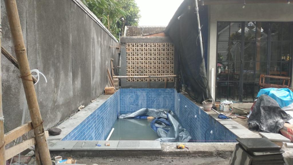 - Penerapan lapisan penutup kolam renang, dapat berupa keramik, mozaik, atau liner PVC.